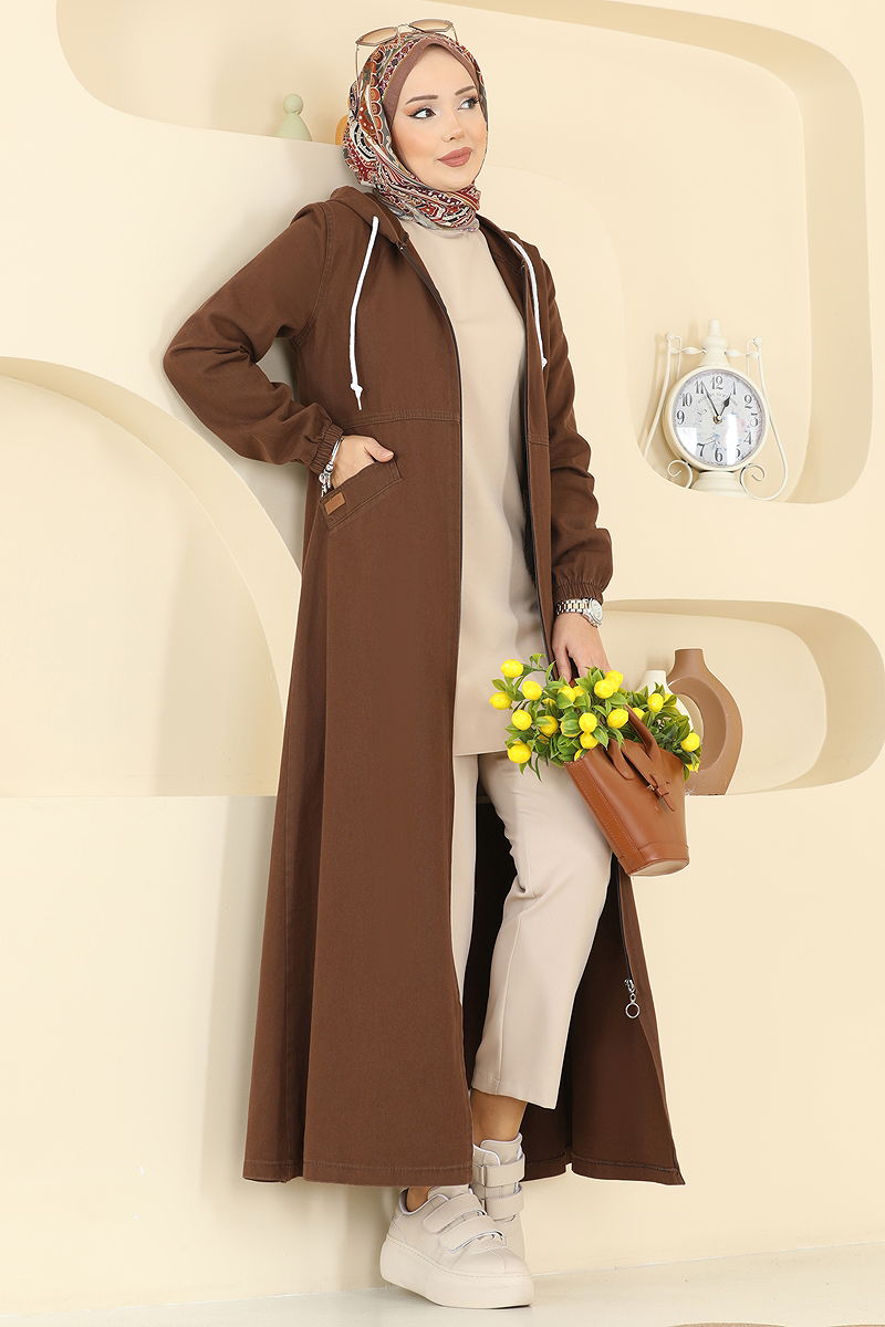 This chic and functional Elastic Cuffed Denim Coat is an ideal modest wear piece that can comfortably be worn in any season. Washable at 30 degrees on a gentle cycle, this garment offers easy maintenance. Featuring a hooded design with active drawstring, it enhances a modern look while the zippered front and pockets provide practicality. With its non-transparent, unlined design, this coat offers both comfort and elegance. Choose the perfect size from the available options and enjoy being stylish and comfortable in any setting.
