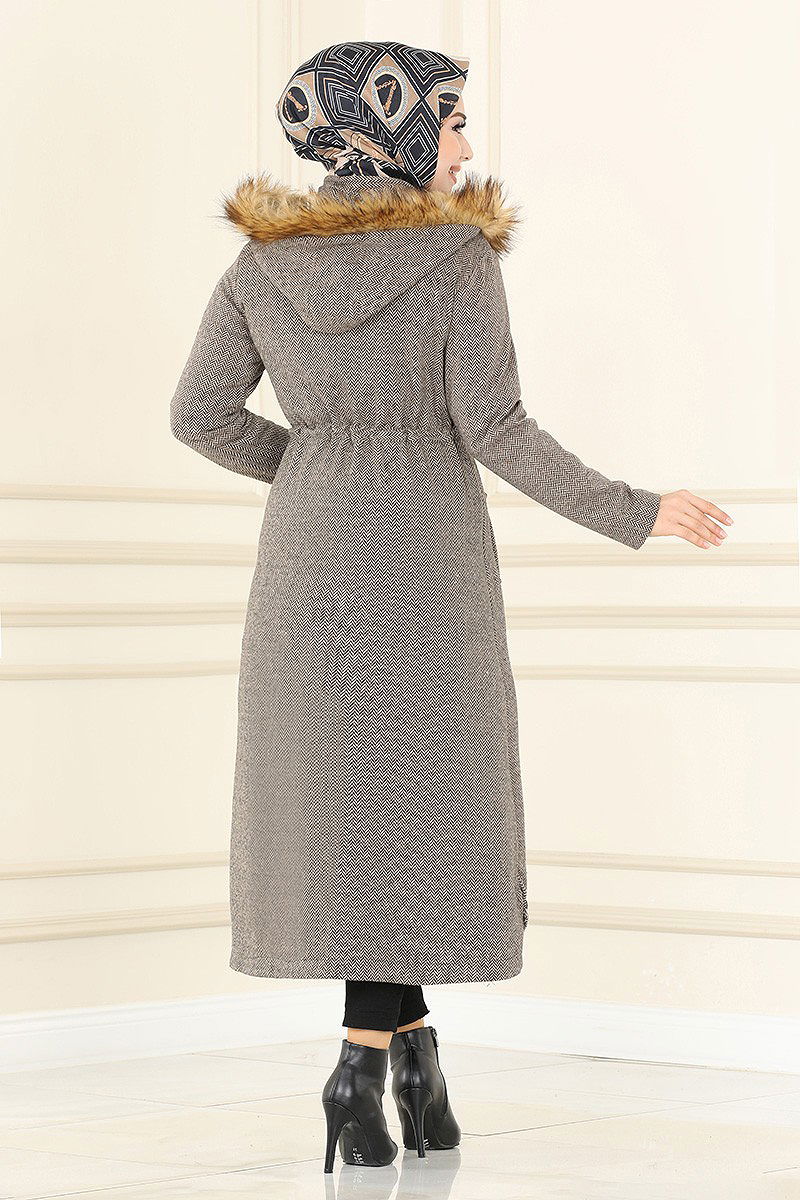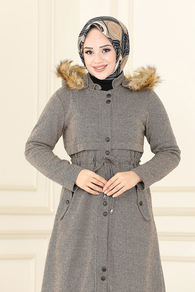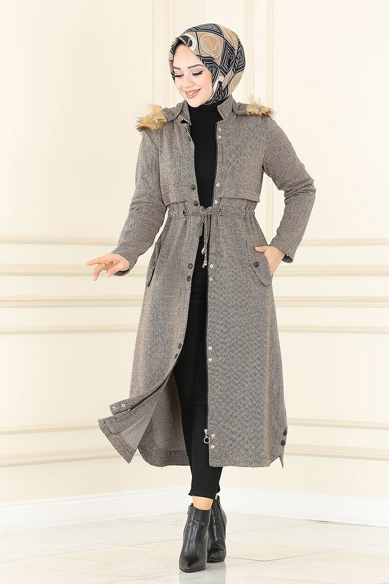 خصوصية القماش: وهي مصنوعة من نسيج محبوك الشتاء.قماش يستخدم في فصل الشتاءميزة المنتج :منتجات الموسم الجديد موضة المحجبات. (غير مبطن.)ذو قبعة.مزود بكبسة تثبيت وسحاب يمكن استخدامه من الأمام.الخصر ربط.المنتج يتضمن القبعة، يمكن عدم الاستخدام حسب الرغبة.يحتوي على اجيب.كبشون (طاقية) مخياطة فرو في المنتجقد تختلف درجة لون المنتج بشكل قليل على الواقع عن الصورة الموجودة بسبب إضاءة التصوير