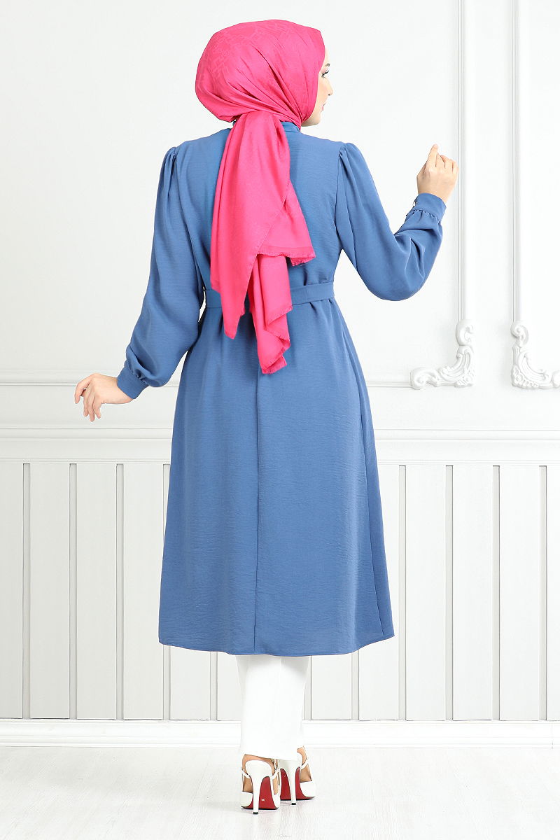 المنتج لديه ياقة نصف بيضوية. غير مبطنة. المنتج به سحاب في جزء من الأمام. الحزام متضمن، ،يمكن استخدامها حسب الرغبة أزرار الكفة نشطة. قد يكون هناك اختلاف في الدرجة اللونية في المنتج بسبب التقاط الصور الفوتوغرافية.