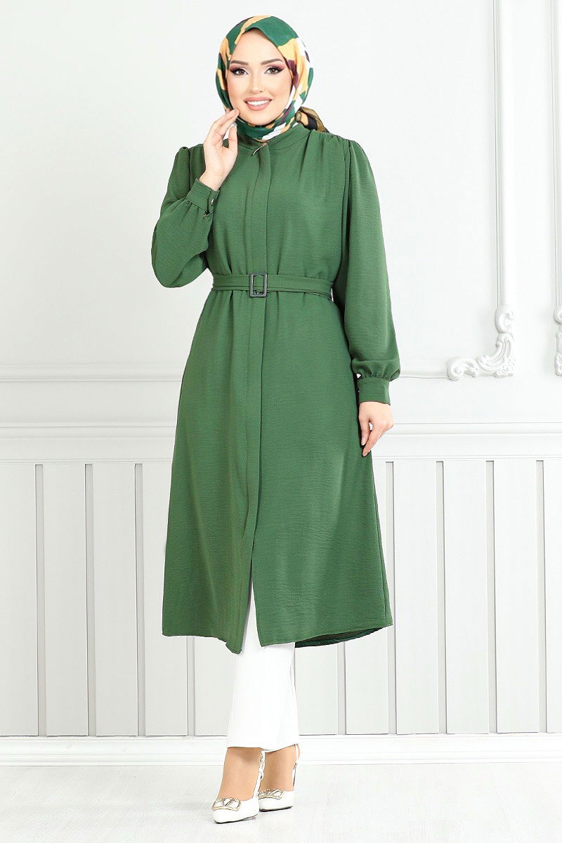 المنتج لديه ياقة نصف بيضوية. غير مبطنة. المنتج به سحاب في جزء من الأمام. الحزام متضمن، ،يمكن استخدامها حسب الرغبة أزرار الكفة نشطة. قد يكون هناك اختلاف في الدرجة اللونية في المنتج بسبب التقاط الصور الفوتوغرافية.