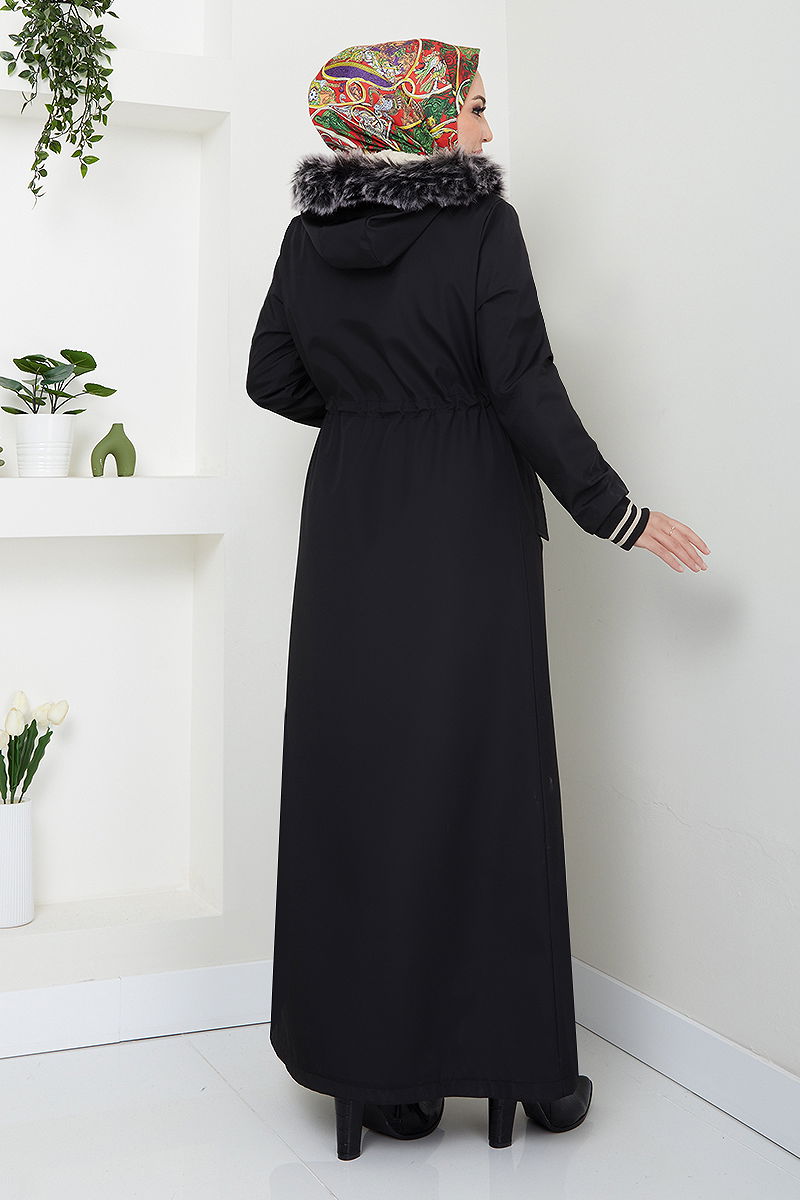 Product Feature : It is a new season hijab fashion product. It has a front zipper that can be used. The product has a Hooded collar. The product has From the front buttons. The lining is made of fur.. Hood fur is sewn into the product. Hood included, optional not available. Pocket available. There may be a tonal difference in the product due to concept photo shoots.