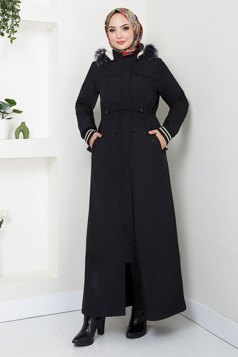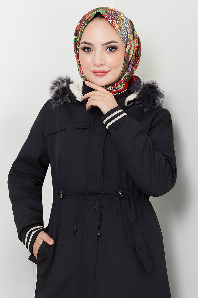 يتميز بسحّاب أمامي للإغلاق بسحّاب. المنتج لديه ياقة مع قبعة. المنتج به أزرار من الأمام. البطانة مبطنة بالفرو.. تم خياطة القبعة مع الفرو يتضمن المنتج القبعة ويمكن استخدامها حسب الرغبة الجيب متاح. قد يكون هناك اختلاف في الدرجة اللونية في المنتج بسبب التقاط الصور الفوتوغرافية.