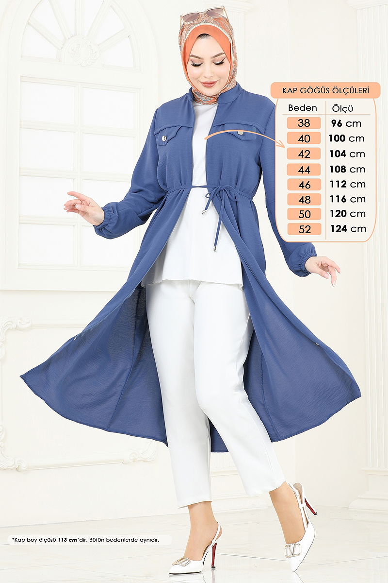المنتج لديه ياقة نصف بيضوية. غير مبطنة. المنتج به سحاب في جزء من الأمام. الأزرار هي إكسسوارات. الحزام متضمن، ،يمكن استخدامها حسب الرغبة الجيب متاح. السوار مطاطي. قد يكون هناك اختلاف في الدرجة اللونية في المنتج بسبب التقاط الصور الفوتوغرافية.