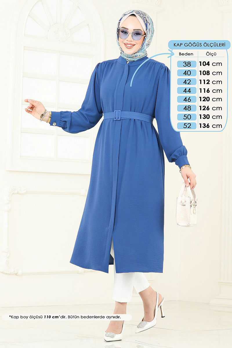 المنتج لديه ياقة نصف بيضوية. غير مبطنة. المنتج به سحاب في جزء من الأمام. الحزام متضمن، ،يمكن استخدامها حسب الرغبة الملحقات غير متضمنة. أزرار الكفة نشطة. قد يكون هناك اختلاف في الدرجة اللونية في المنتج بسبب التقاط الصور الفوتوغرافية.