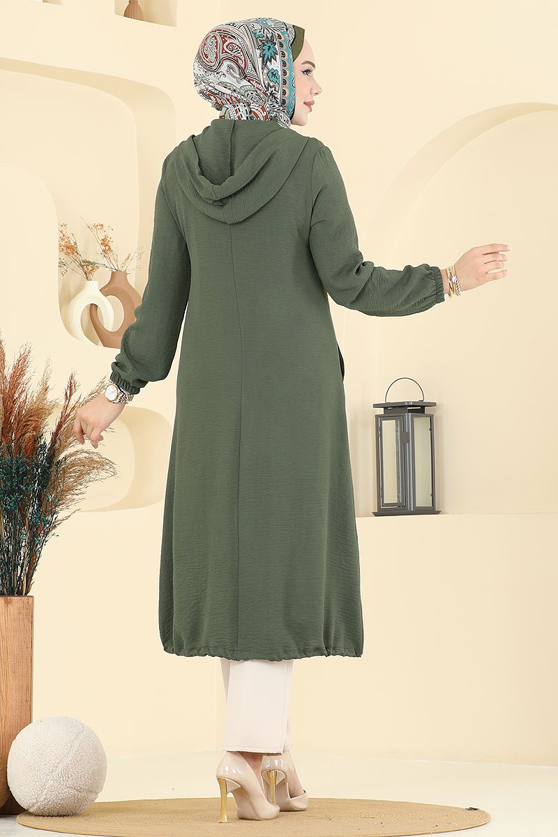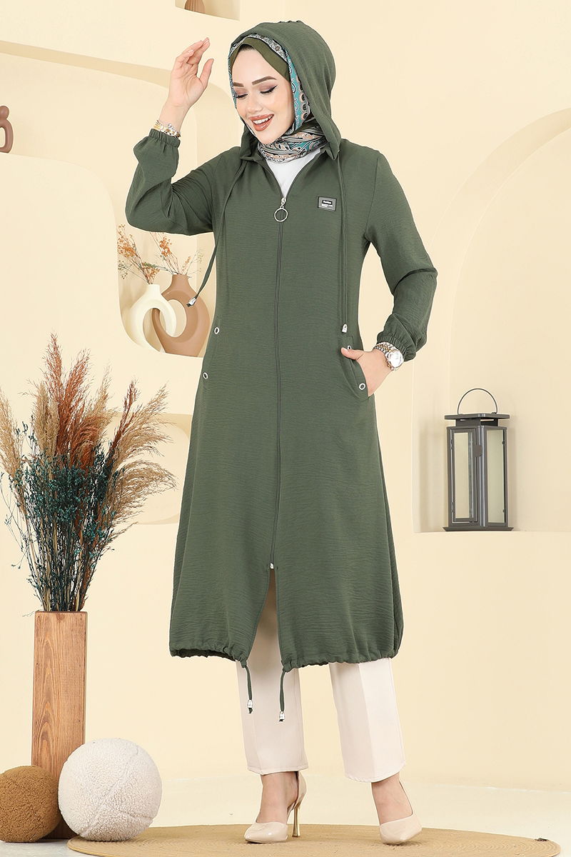 Product Feature : It is a new season hijab fashion product. The product has a Hooded collar. Unlined. The product has a zipper at the From the front part. The hood is sewn to the product. Pocket available. The cuff is rubberized. There may be a tonal difference in the product due to concept photo shoots.