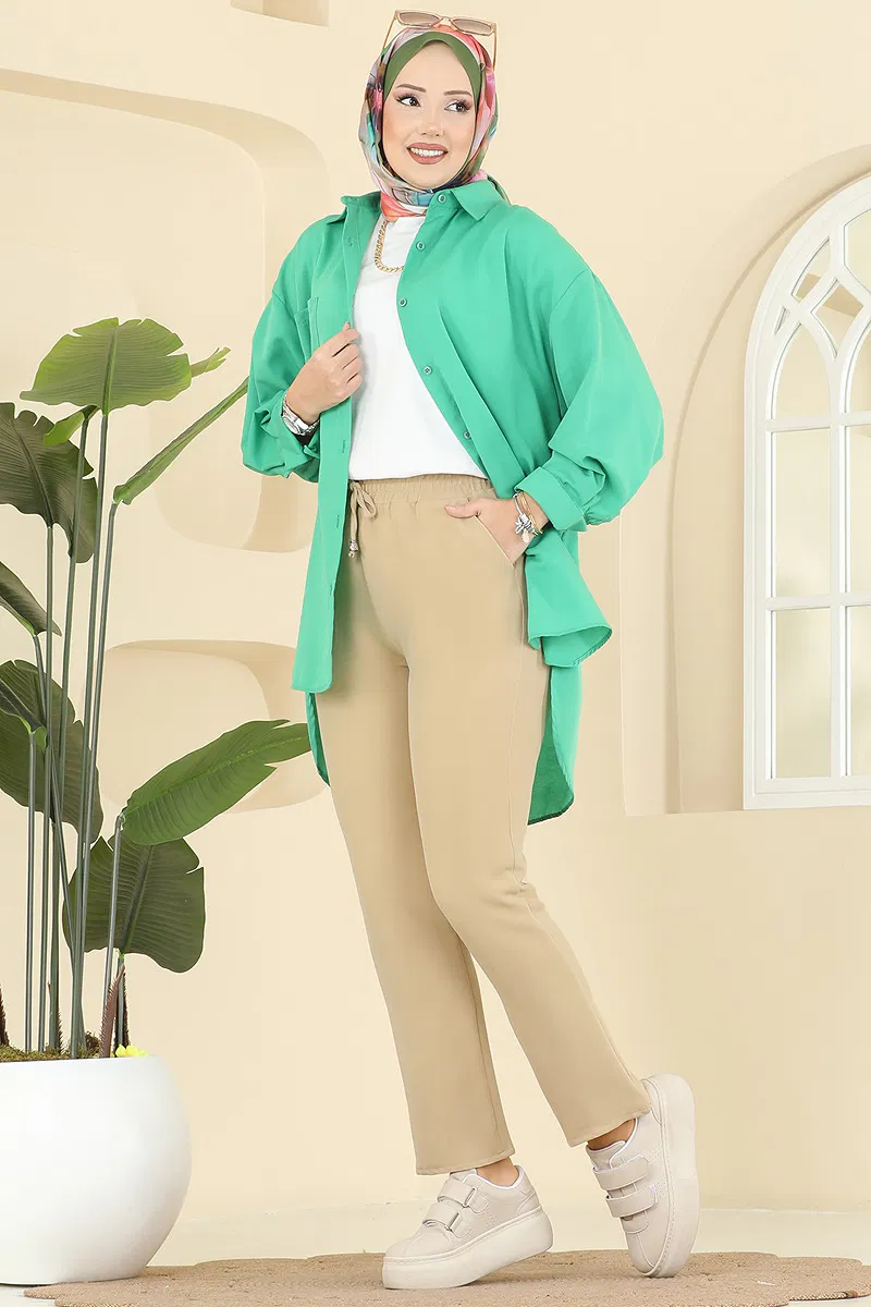 Product Feature : It is a new season hijab fashion product. Unlined. The belt is sewn. Pocket available. The waist of the trousers is elastic. There may be a tonal difference in the product due to concept photo shoots.