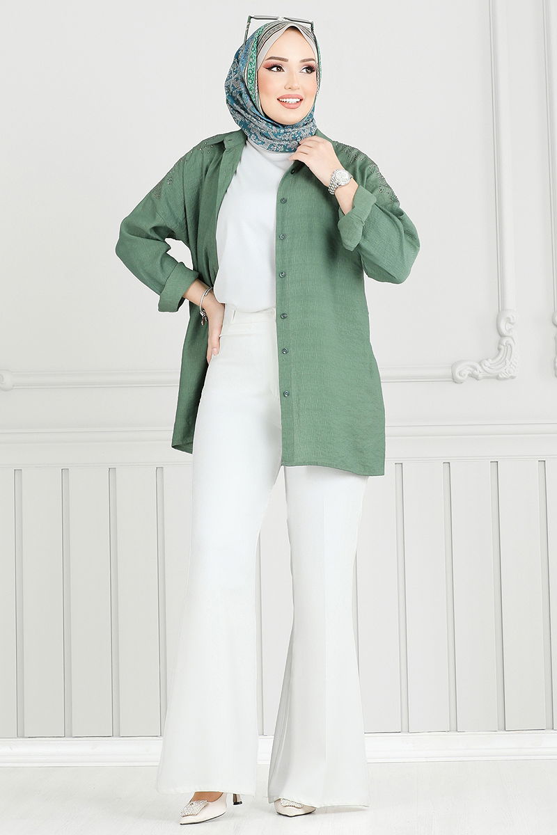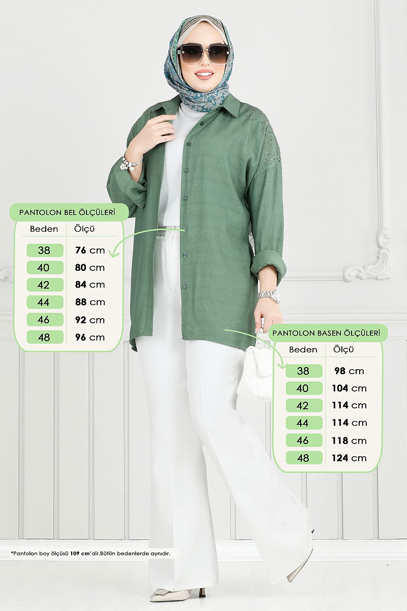 Offering a modern and stylish look with its flared leg design, this trousers are an ideal choice for those who adopt the modest clothing style. Suitable for use in all four seasons, this product can be washed gently at 30 degrees. Manufactured from durable and soft Dabıl fabric, it provides a light and comfortable fit with its unlined design. The front button and zipper design ensure practical use. The product displayed on the model is size 38.