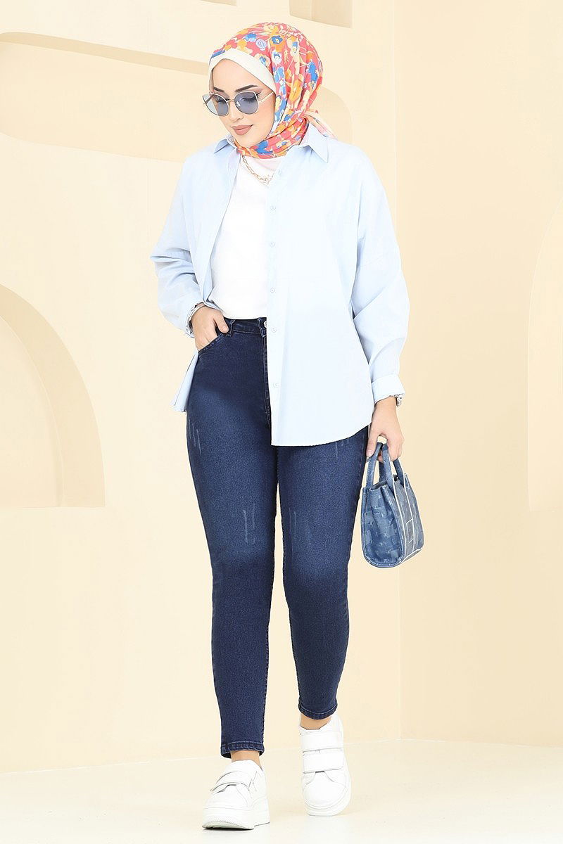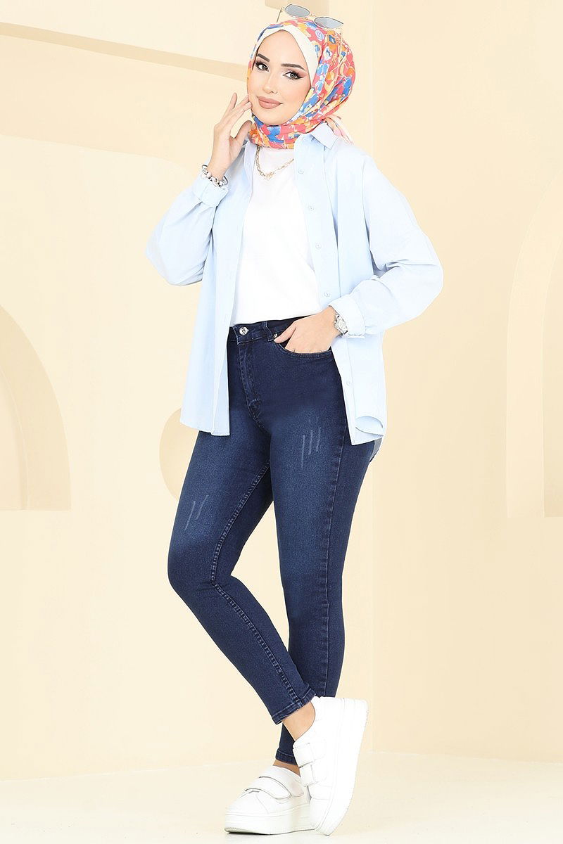 Our Pocket Detail Jeans are designed for modest wear, offering comfort and style throughout all seasons. Recommended washing at 30 degrees on a delicate cycle. The model wears a size 28, featuring a functional button and zipper at the front. Also, it has practical pockets for your convenience.