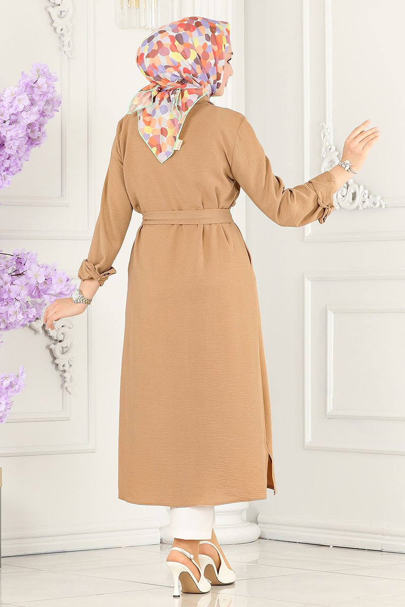 المنتج لديه ياقة القميص. المنتج به أزرار من الأمام. غير مبطنة. الحزام متضمن، ،يمكن استخدامها حسب الرغبة قد يكون هناك اختلاف في الدرجة اللونية في المنتج بسبب التقاط الصور الفوتوغرافية.