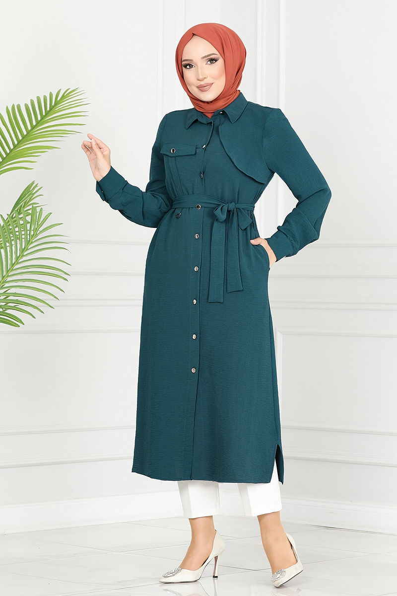 المنتج لديه ياقة القميص. المنتج به أزرار من الأمام. غير مبطنة. الحزام متضمن، ،يمكن استخدامها حسب الرغبة قد يكون هناك اختلاف في الدرجة اللونية في المنتج بسبب التقاط الصور الفوتوغرافية.