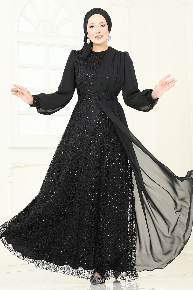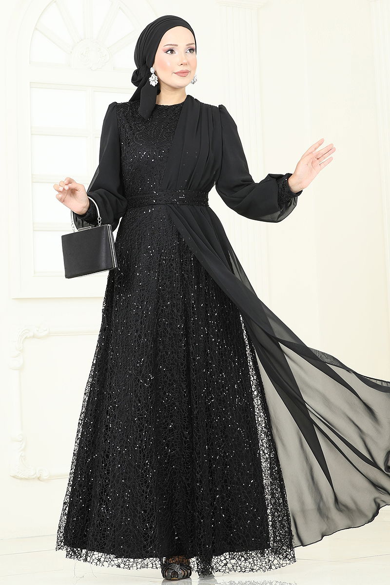 Kumaş Özelliği : Pul Payet ve Şifon kumaştan imal edilmiştir. Dört Mevsim sezonunda kullanılabilir.
