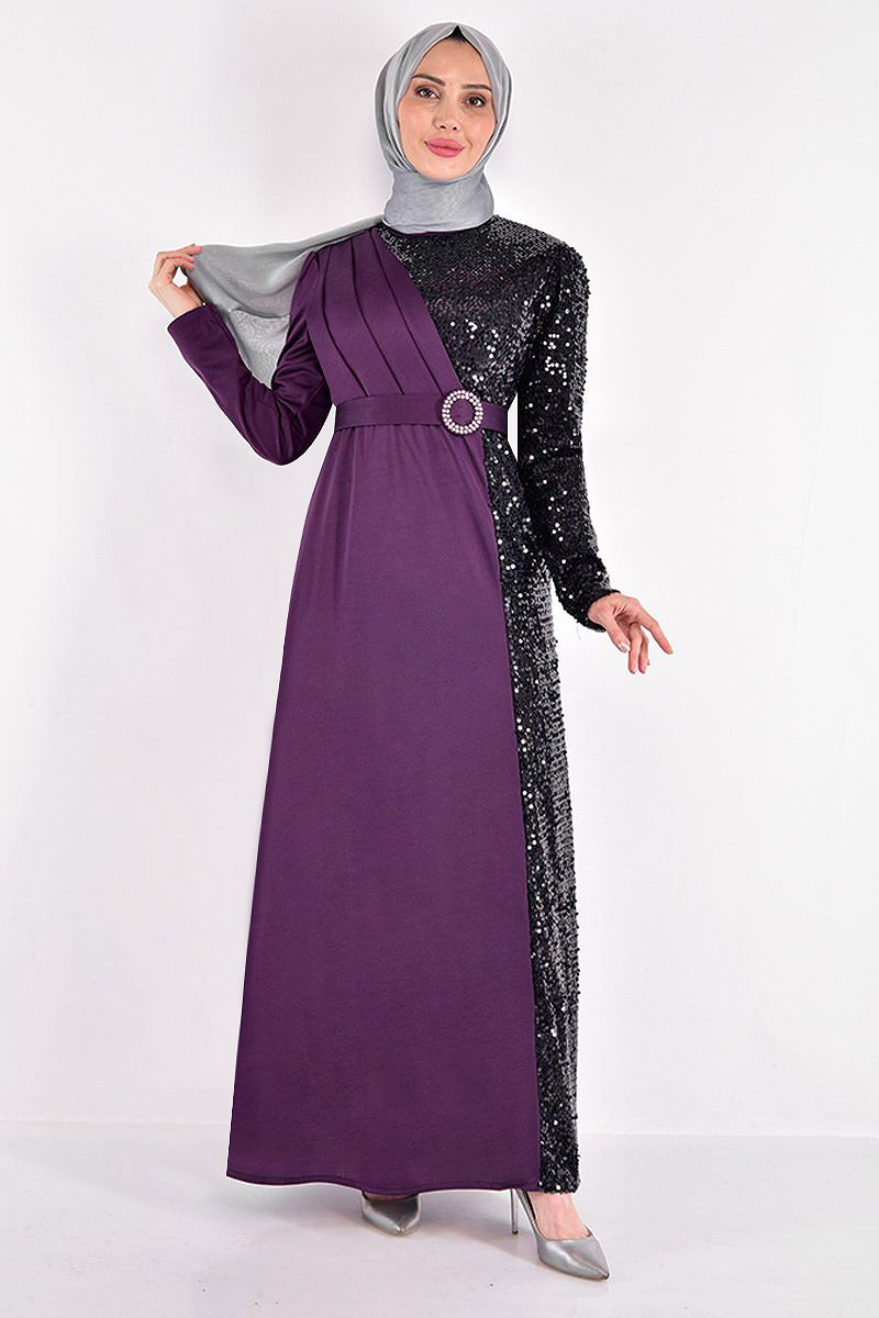 Payet Detaylı Tesettür Abiye ASM2516-M Mürdüm