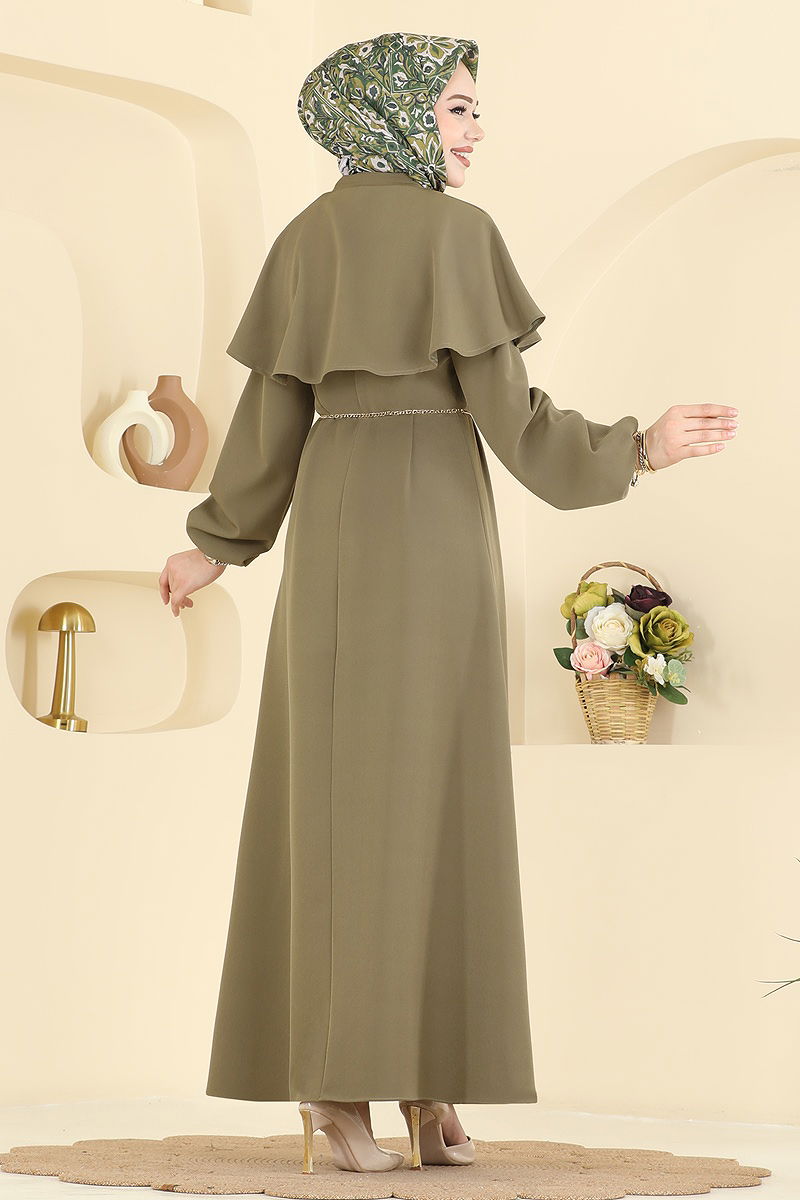 Ürün Özelliği : Yeni sezon tesettür moda ürünüdür. Ürün Bisiklet yakadır. Astarsızdır. Ürün Sırttan fermuarlıdır. Ürün beli dikişlidir. Pelerin ürüne dahildir, isteğe bağlı kullanılmayabilir. Kemer ürüne dahildir, isteğe bağlı kullanılmayabilir. Manşet lastiklidir.Konsept fotoğraf çekimlerinden dolayı üründe ton farklılığı olabilir.