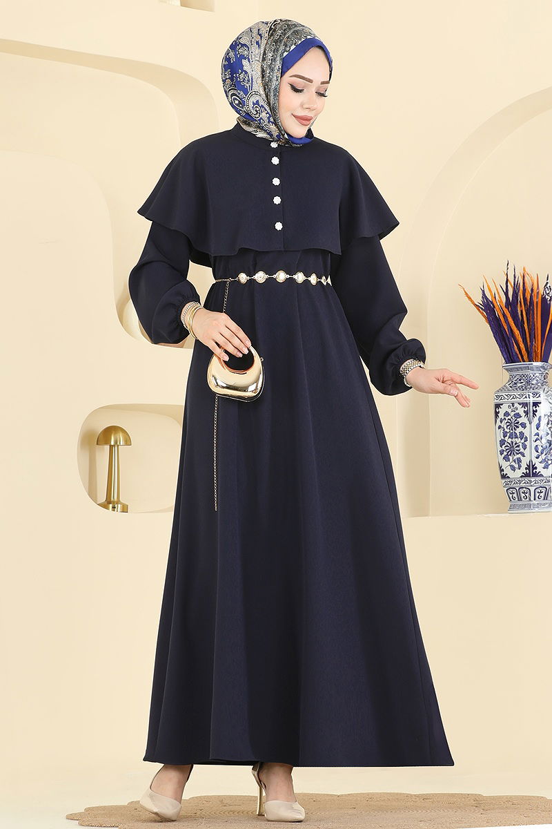 Şıklığı ve konforu bir arada sunan Pelerin Detaylı Dabıl Elbise, dört mevsim boyunca keyfini çıkarabileceğiniz özel bir tesettür kombin modelidir. Pelerin detayı ile dikkat çeken bu elbise, isteğe bağlı olarak çıkarılabilen pelerini ile farklı görünümler sunmanıza olanak tanır. 30 derecede hassas yıkama ile kolayca temizleyebileceğiniz bu ürün, bisiklet yaka ve astarsız tasarımı ile rahat bir kullanım sağlar. Sırttan fermuar detayı ise giyimi kolaylaştırır. Hem günlük kullanıma hem de özel günlerinizde tercih edebileceğiniz bu elbise, gardırobunuzun vazgeçilmez parçalarından biri olacak.