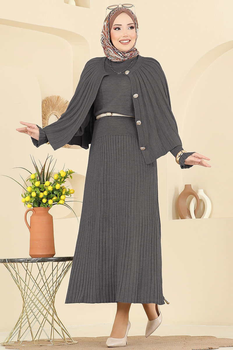Pelerin Detaylı Elbiseli Takım 4478BRZ597 Antrasit