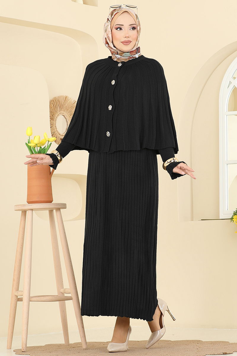 Sonbahar ve kış aylarınızı şık ve konforlu geçirmenizi sağlayacak Bolero Detaylı Elbiseli Takım, tesettür giyimde zarafeti ve rahatlığı bir arada sunuyor. Triko kumaştan üretilen bu takım, soğuk havalarda sizi sıcak tutarken, hassas yapısı sayesinde bakımı kolaydır ve 30 derecede yıkanabilir. Bisiklet yaka tasarımı ve uzun kolları ile modern bir görünüş sunan bu model, aktif bolero düğmeleriyle de kullanışlıdır. Ürün, astarsız yapısıyla hafif ve rahat bir kullanım sağlar. Hem günlük hem de özel günlerinizde tercih edebileceğiniz bu elbiseli takım, standart beden seçeneği ile geniş bir kullanıcı kitlesine hitap eder.