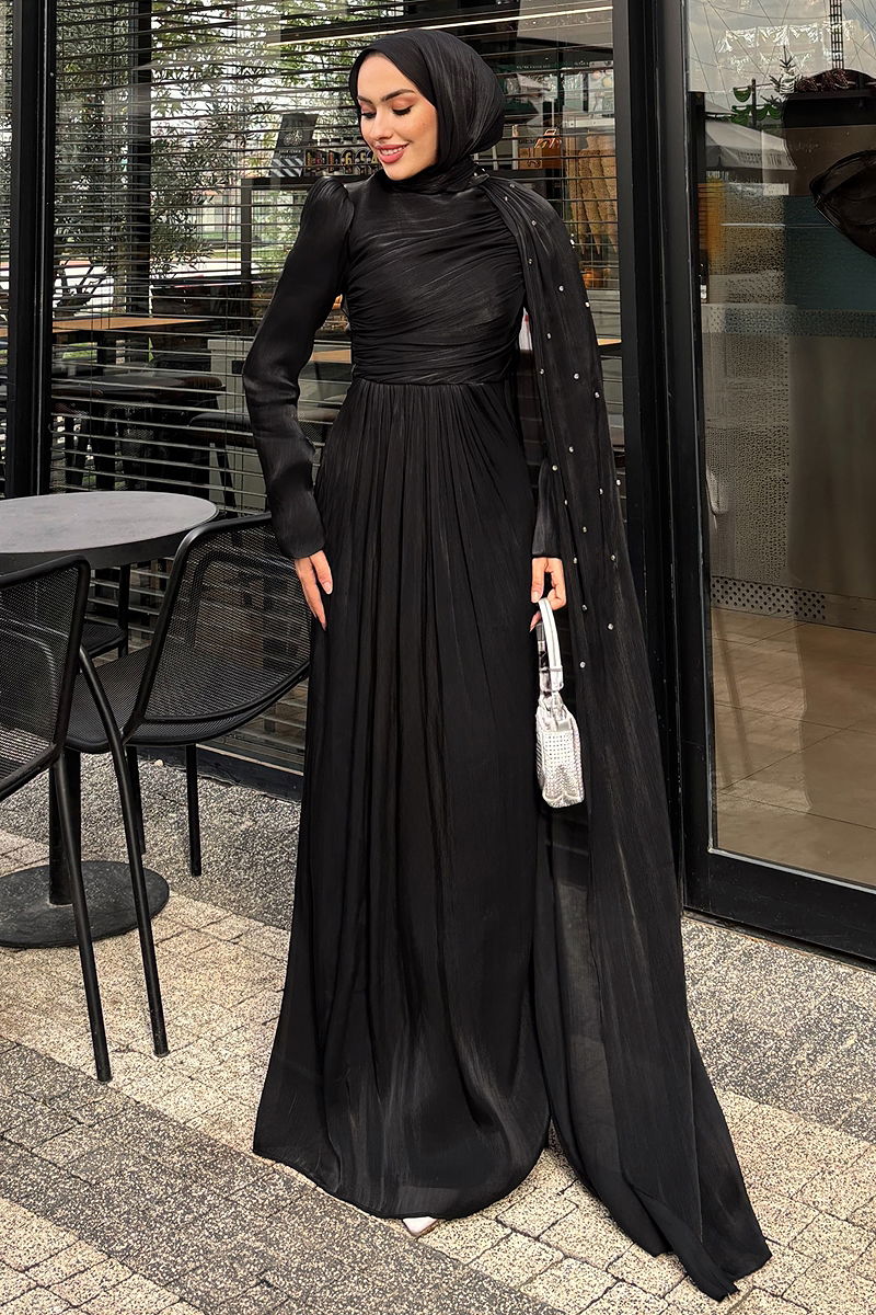 Şıklık ve zarafetin buluşma noktası: Pelerin Detaylı Taşlı Abiye. Tesettür özellikli bu abiye, dört mevsim boyunca kullanımınıza uygun. Organze kumaştan üretilmiş olan bu özel tasarım, hakim yaka ve yarım astar detaylarıyla dikkat çekiyor. Sırttan fermuarlı yapısı ve çakma taş detayları ile göz alıcı bir görünüm sunar. Pelerin, elbiseye dikilmiş olup, bu ürünle özel davetlerde farkınızı ortaya koyun. Not: Ürün sadece kuru temizleme ile temizlenmelidir.