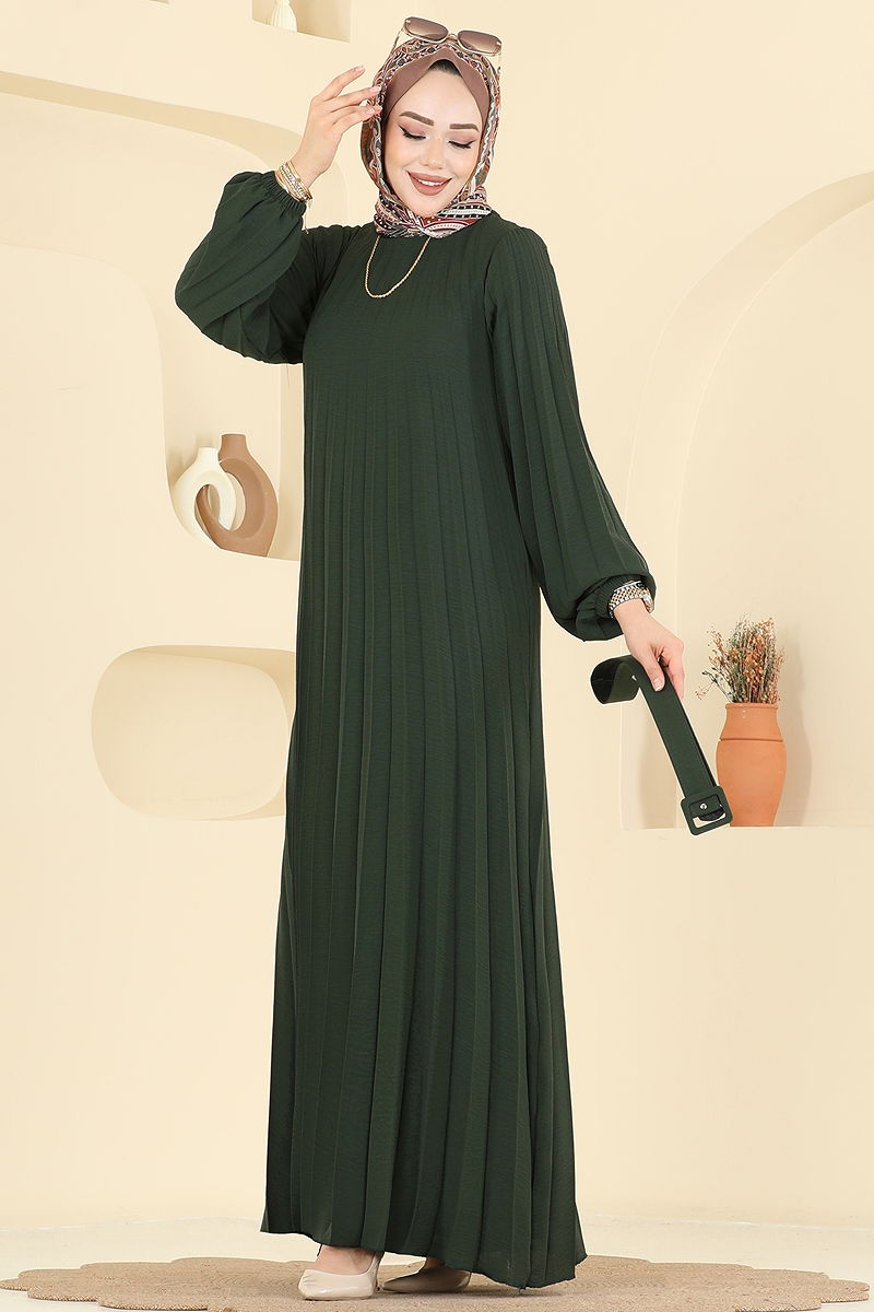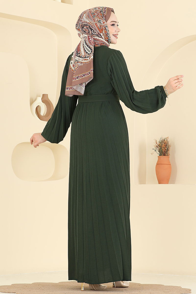 Pilise Detay Kemerli Elbise 2340MSZ1172 Haki