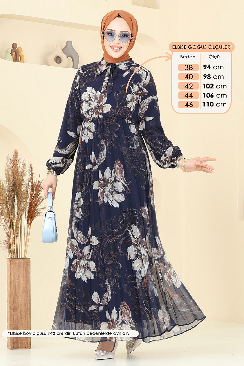 Bu zarif Çiçek Desenli Şifon Elbise, dört mevsim boyunca rahatlık ve şıklığı bir araya getiriyor. Tesettür tasarımı ile modern ve muhafazakar görünümleri birleştiren bu elbise, hassas yapısı sayesinde özel günlerinizde veya günlük kullanımda ideal bir seçimdir. 30 derecede hassas yıkama programında yıkanabilen elbise, astarlıdır ve şifon kumaştan üretilmiştir.