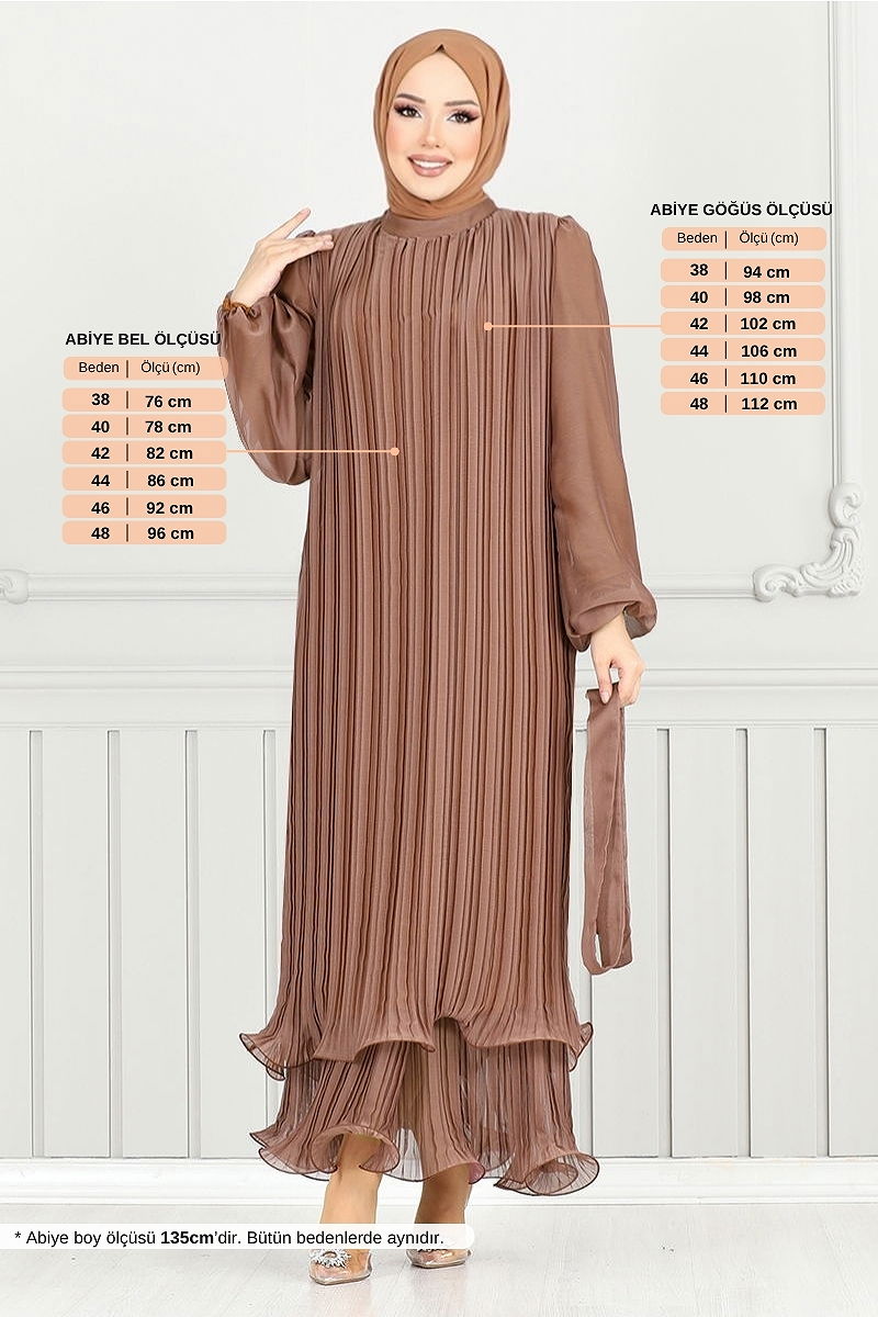 Piliseli Janjan Abiye, özel tasarım tesettür abiye modelidir. Dört mevsim boyunca giyilebilir yapısı ve özel janjan kumaşı ile dikkat çeken bir üründür. Kuru temizleme ile temizlenmesi önerilir. Hakim yaka detayı ve astarlı yapısı ile konforu ön planda tutar. Sırt kısmında bulunan fermuar, giyimi kolaylaştırır. Üründe yer alan kemer, iki ucu dikilmiş olup, orta kısım rahat bir kullanım için dikişsiz bırakılmıştır. Kemer, ürüne dahil olmakla birlikte isteğe bağlı olarak çıkarılabilir. Manşetler elastik yapıdadır, rahat bir kullanım sunar.