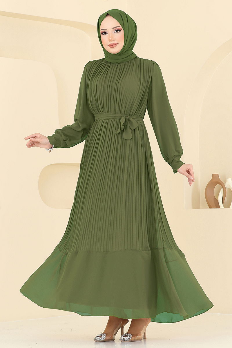 Piliseli Şifon Abiye Elbise, modeli ile tesettür giyimine şık bir alternatif sunar. Dört mevsim rahatlıkla kullanabileceğiniz bu elbise, sadece kuru temizleme ile temizlenmelidir. Yüksek kalitede şifon kumaştan üretilmiş olup, yarım hakim yaka ve astarlı tasarımı ile konfor sunar. Sırttan fermuarlı yapısı ve modelin üzerindeki 38 beden ölçüleri ile ideal fit sağlar. Ürüne dahil edilen kemer, dalgalanmayı önlemek amacıyla özel olarak dikilmiştir ve isteğe bağlı olarak çıkarılabilir.