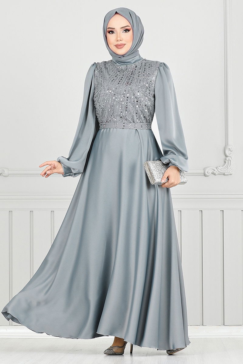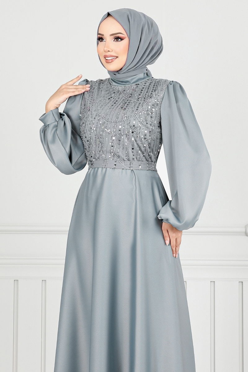 Şıklığı ve zarafeti bir arada sunan Pul Detay Saten Abiye, tesettür giyim koleksiyonunuz için mükemmel bir seçenektir. Dört mevsim boyunca giyebileceğiniz bu abiye, özellikle özel gün ve gecelerinizde göz kamaştırmanızı sağlayacak. Hakim yaka tasarımı ve sırttan fermuarlı yapısıyla modern bir görünüm sunarken, saten kumaşı ile de üstün bir konfor sağlar. Pul detaylar ise elbiseye şık bir parlaklık katmakta. Kuru temizleme ile bakımı önerilir ve kemer detayı tarzınıza göre ayarlanabilir.