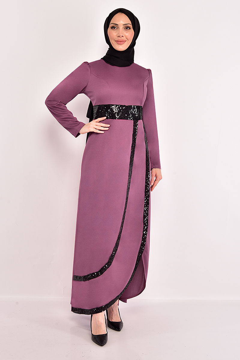 Pul Detaylı Elbise ASM2545-M Koyu Gül Kurusu