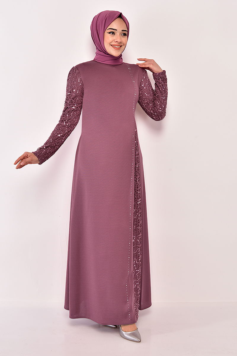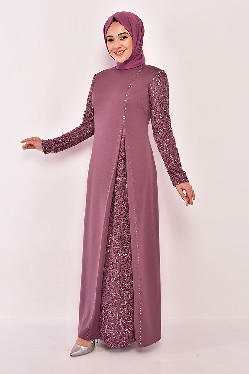 Pul İşlemeli Abiye ASM2546-M Gül Kurusu