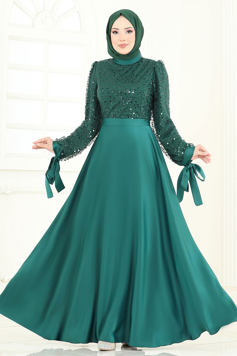 Bu zarif Pul İşlemeli Saten Abiye, tesettür tasarımıyla dört mevsim rahatlıkla kullanabileceğiniz bir üründür. Sadece kuru temizleme ile bakımı yapılabilen bu abiye, Kobe ve Saten kumaşlarından üretilmiştir ve dayanıklıdır. Hakim yaka, astarsız yapısı ve sırttan fermuarlı tasarımı ile modern ve şık bir görünüme sahiptir. Pul ve payet detaylarıyla göz kamaştırırken, özel dikilmiş kemer ile farklı bir hava katmaktadır. Kemer, kullanımı tercihe bağlı olarak çıkarılabilir. Manşetlerdeki bağcıklar ise hem şık hem de pratik bir kullanım sunar.