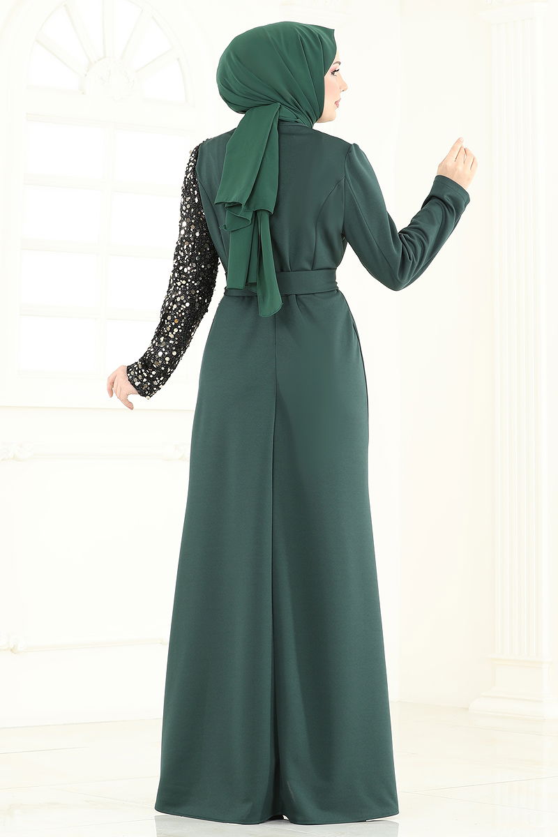 المنتج لديه ياقة دائرية. غير مبطنة. المنتج به سحاب في جزء من الخلف. المنتج يحتوي على حزام خصر مُخاط. تفاصيل الترتر اللامع تم خياطته الحزام متضمن، ،يمكن استخدامها حسب الرغبة قد يكون هناك اختلاف في الدرجة اللونية في المنتج بسبب التقاط الصور الفوتوغرافية.