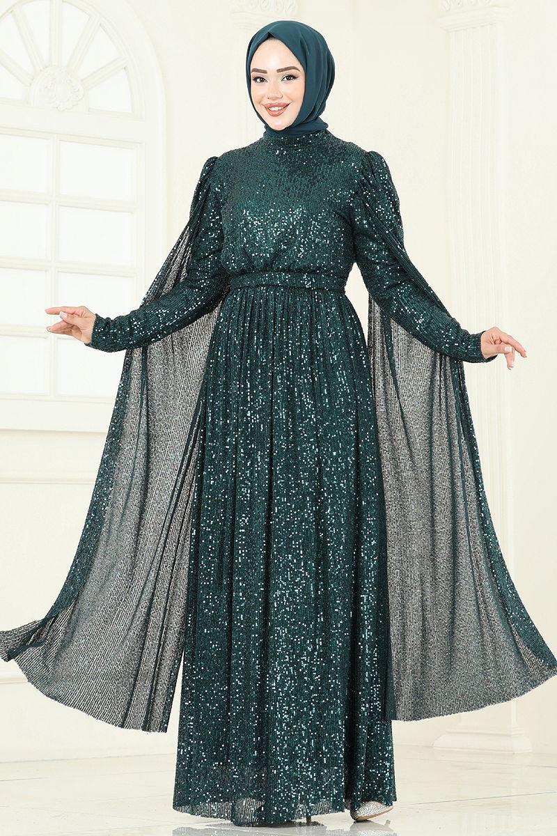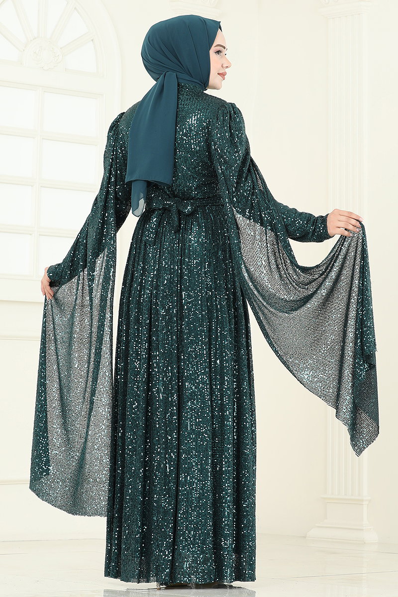 Pul Payet Detaylı Abiye Zümrüt