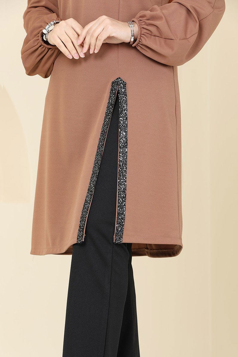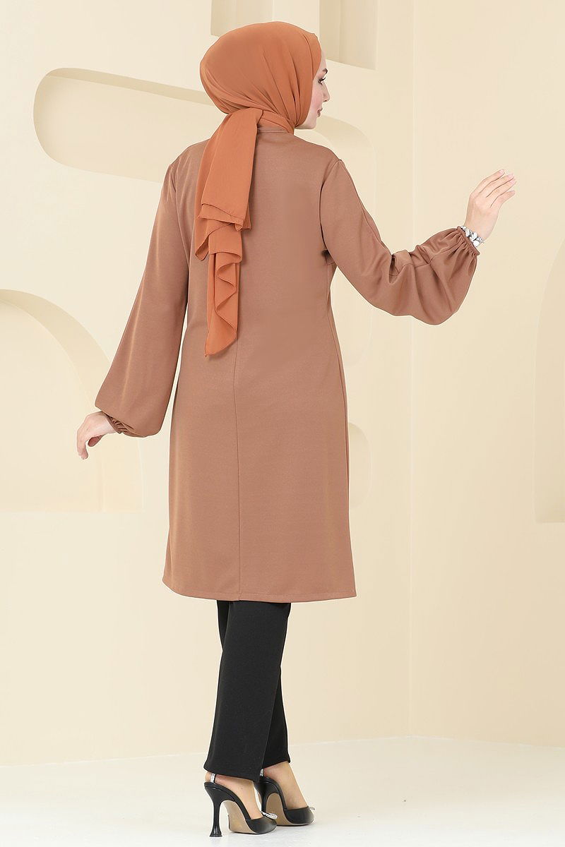 Ürün Özelliği : Yeni sezon tesettür moda ürünüdür. Sırttan kullanılabilir bir düğmesi bulunmaktadır. Ürün Bisiklet yakadır. Tunik yandan yırtmaçlıdır. Astarsızdır. Pul detayı dikilidir. Pantolon beli lastiklidir. Manşet lastiklidir. Konsept fotoğraf çekimlerinden dolayı üründe ton farklılığı olabilir.