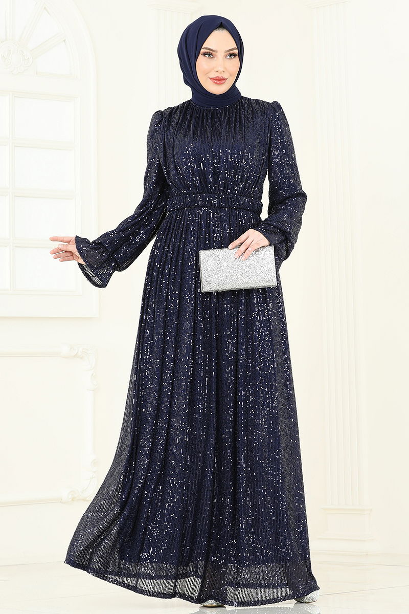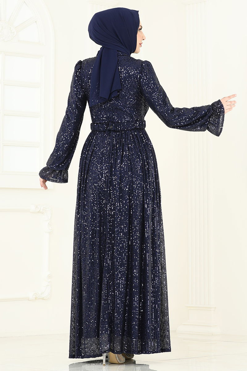 Şıklığınızı ön plana çıkaracak Pul Payet İşlemeli Abiye, dört mevsim boyunca rahatlıkla giyebileceğiniz bir modeldir. Tesettür tasarımı ile dikkat çeken bu abiye, yalnızca kuru temizleme ile temizlenmelidir. Parıltılı pul payet kumaşı, yarım hakim yaka ve astarlı yapısı ile konfor ve zarafeti bir arada sunar. Sırttan fermuarlı olan bu elbise, gömlek tadında bir kemerle tamamlanmıştır; kemer, beli sıkı tutmak için uçları dikilmiş olup, orta kısmı ise serbest bırakılmıştır. Kemer isteğe bağlı olarak çıkarılabilir. Elastik bel ve manşet detayları ise gün boyu rahat bir kullanım sağlar. Bu abiye ile özel günlerinizde göz kamaştırın!