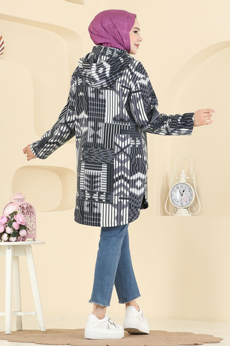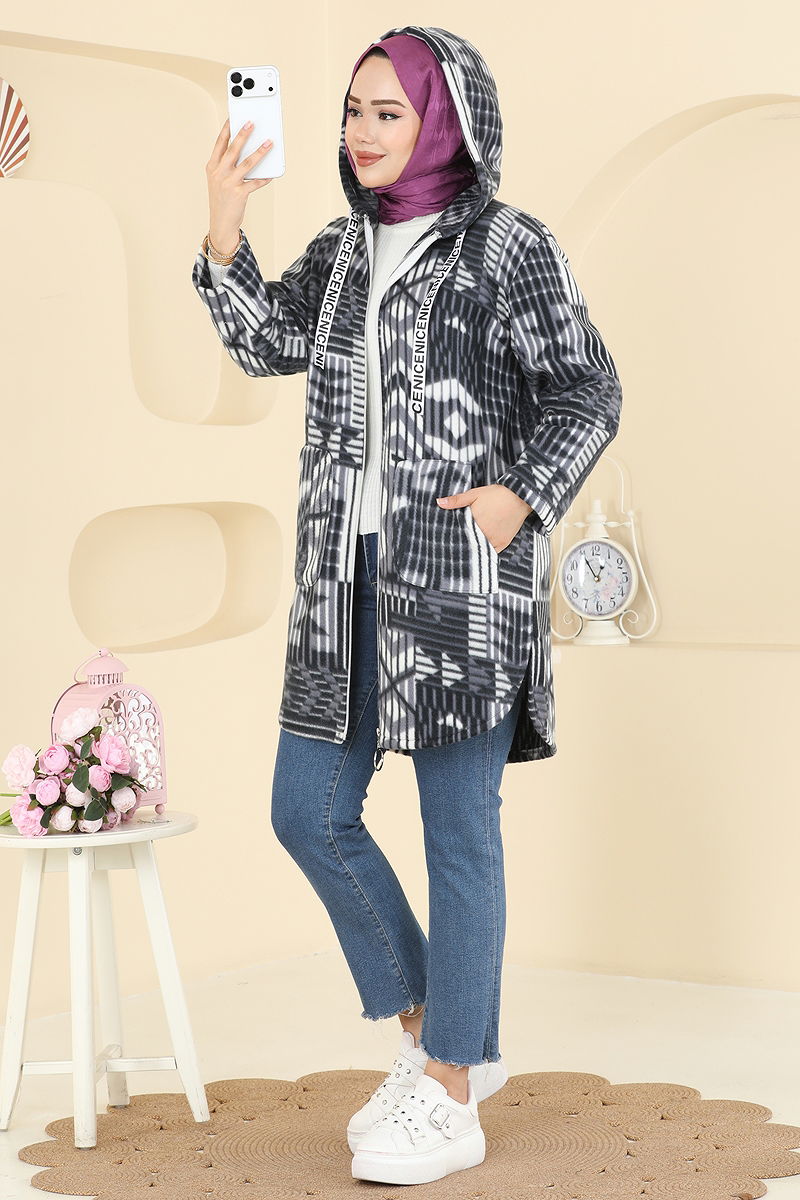 Renkli Desenli Polar Kap, özellikle sonbahar ve kış aylarında kullanılmak üzere tasarlanmış bir tesettür ürünüdür. Polar kumaştan yapılmış bu ürün, 30 derecede hassas yıkama imkanı sunar, böylece uzun ömürlü kullanım sağlar. Kapşonlu ve yaka bağcıklı yapısı ile hem şık hem de işlevseldir. Ürünün ön kısmında fermuar bulunmakta ve aktif bir bağcık ile ayarlanabilir yaka özelliği taşımaktadır. Kapşon sabitlenmiştir ve cep detayı ile kullanışlı bir duruş sergiler.