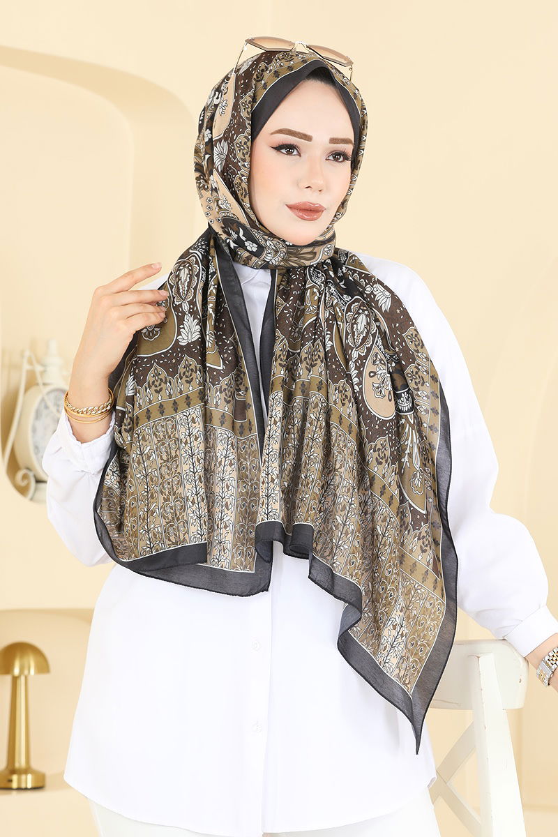 Renkli Desenli Soft Şal Serisi 1306AFV475 Açık Kahve&Siyah