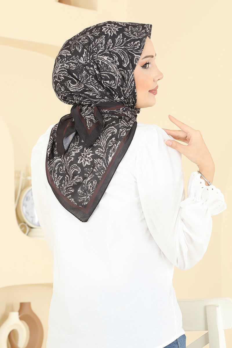 Retro Desen Soft Eşarp Serisi 508ERB1087 Siyah