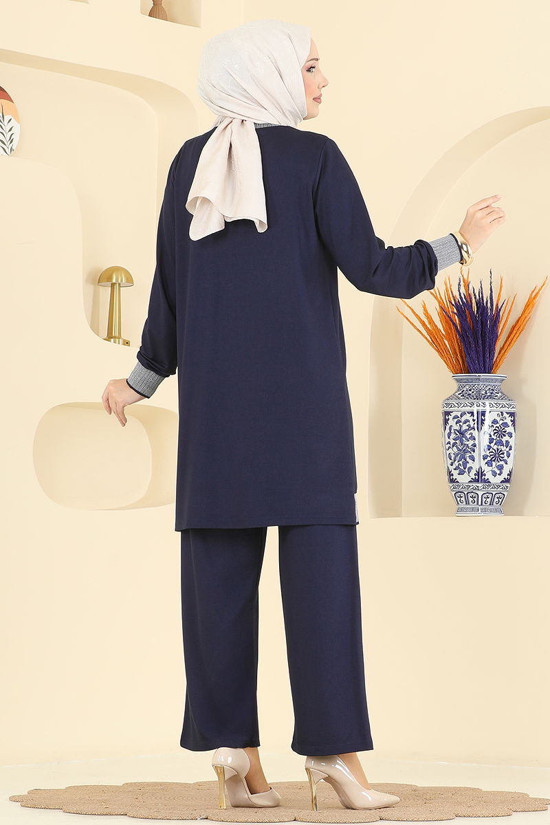 Ürün Özelliği : Yeni sezon tesettür moda ürünüdür. Ürün Bisiklet yakadır. Astarsızdır. Taşlar yapıştırmadır. Pantolon beli lastiklidir.Konsept fotoğraf çekimlerinden dolayı üründe ton farklılığı olabilir.