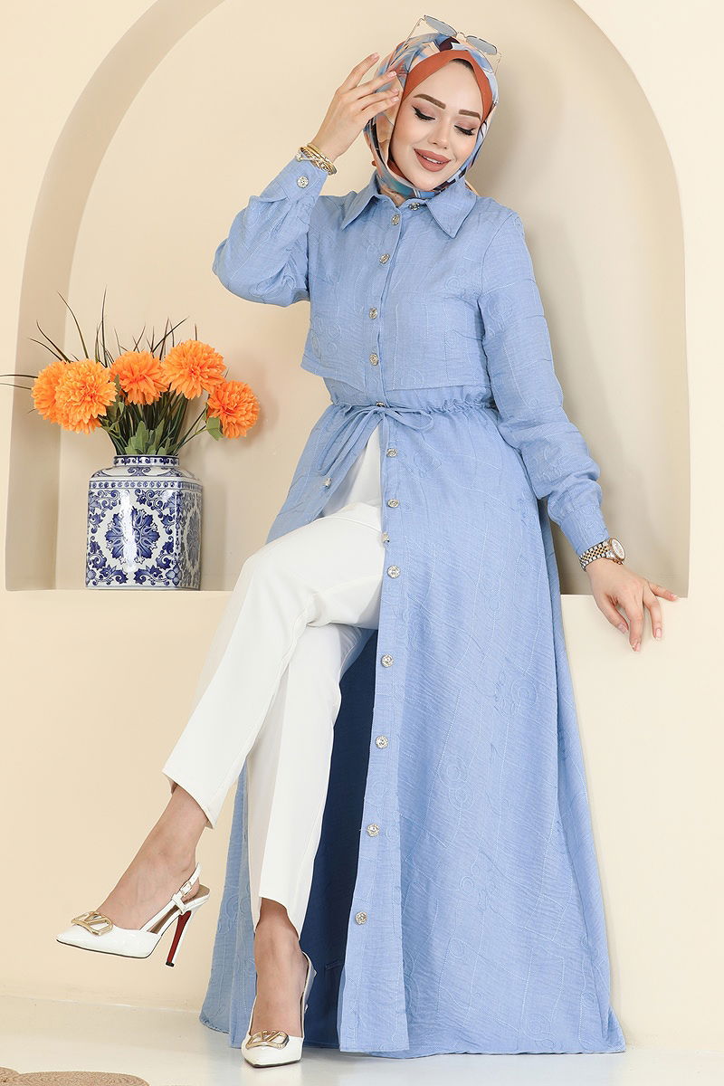 Ürün Özelliği : Yeni sezon tesettür moda ürünüdür. Beli bağcıklıdır. Ürün Gömlek yakadır. Ürün Önden düğmelidir. Astarsızdır. Manşet düğmeleri aktiftir.Konsept fotoğraf çekimlerinden dolayı üründe ton farklılığı olabilir.
