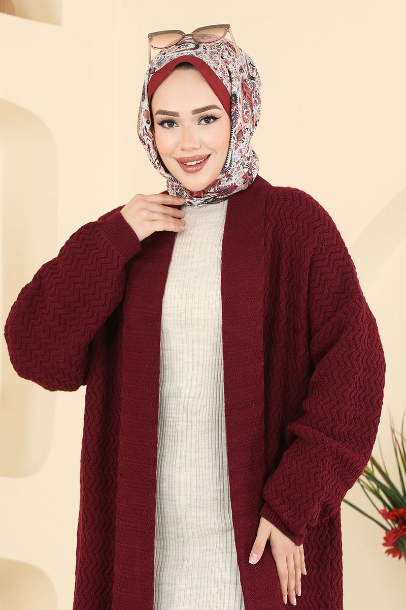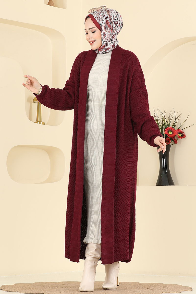 Şal Yaka Uzun Hırka 4470BRZ597 Bordo