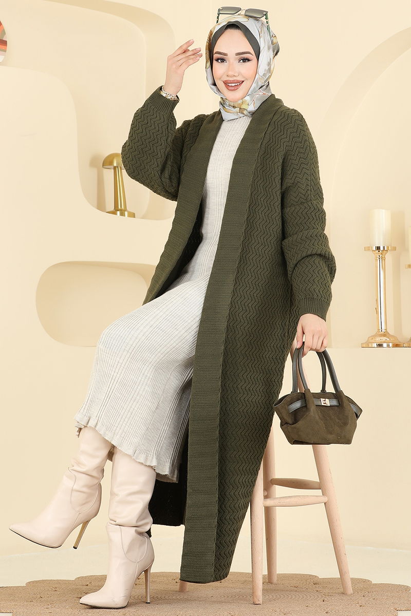 Şal Yaka Uzun Hırka 4470BRZ597 Haki
