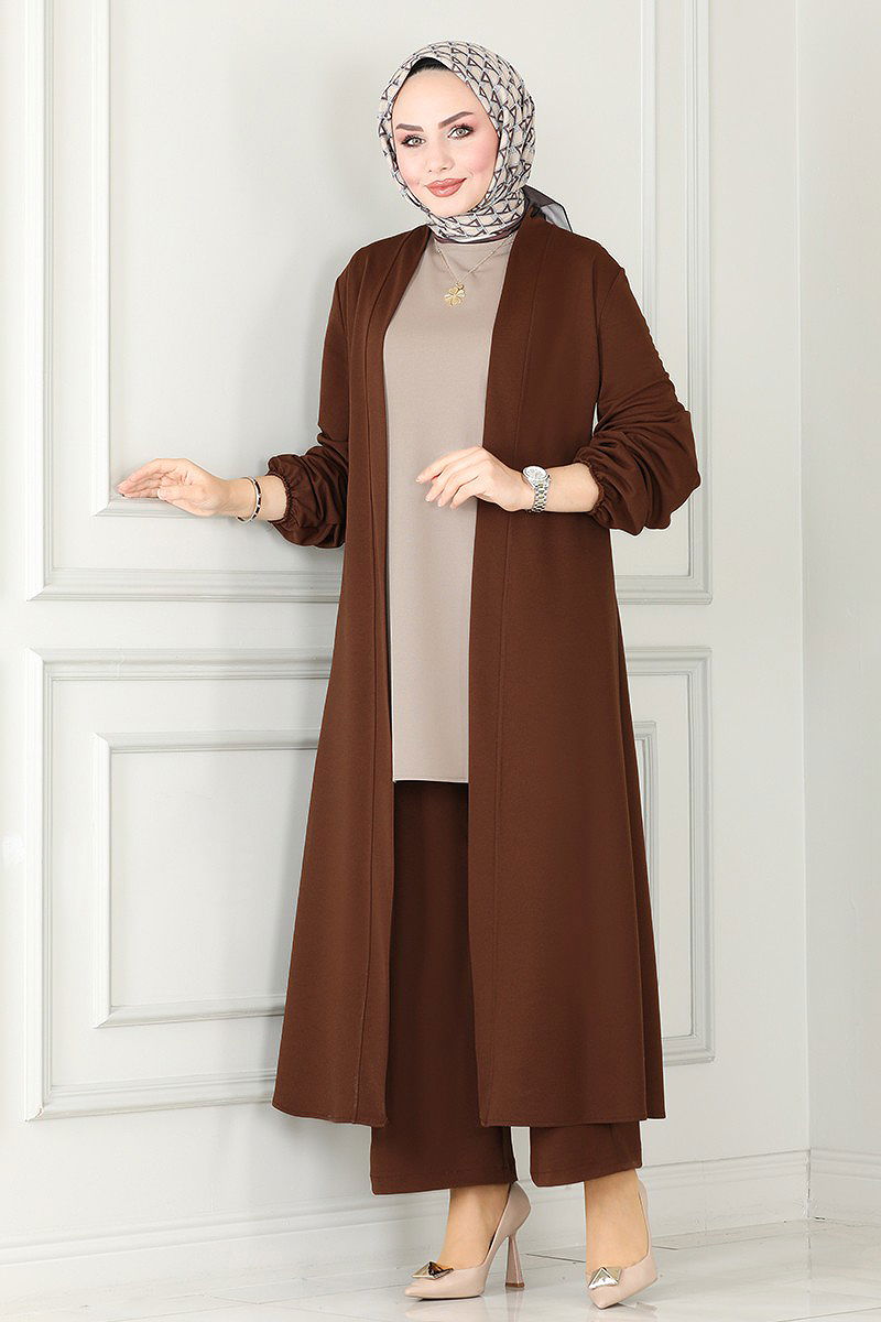 Salaş Üçlü Tesettür Takım Kahve&Vizyon