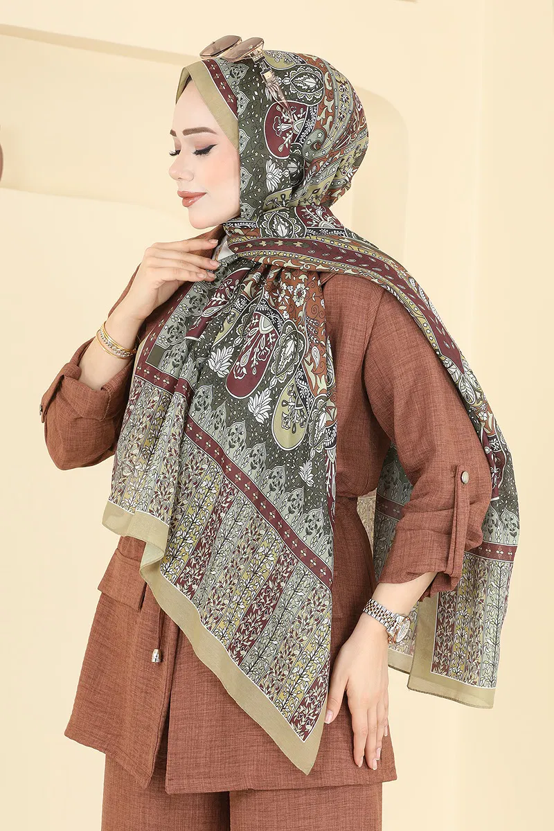 Scarf 1306AFV475 Khaki & Burgundy