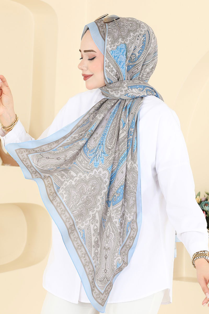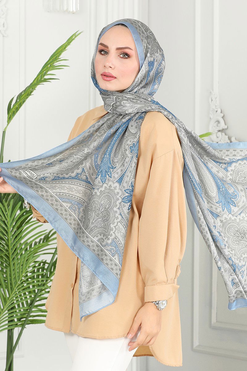 شال أزرق ورمادي