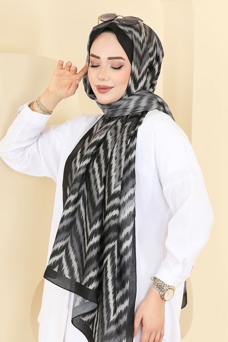 Zigzag Pattern Soft Shawl Series, featuring a modern and elegant design, this modest shawl is made from soft silk fabric. The product can be washed at 30 degrees on a gentle cycle, making it both practical and comfortable for everyday use and special occasions.
