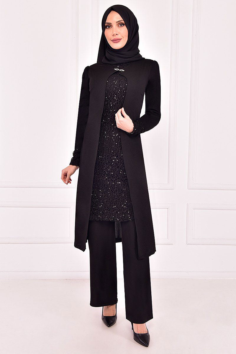 Sequin Detailed Double Set ASM2180-M Black