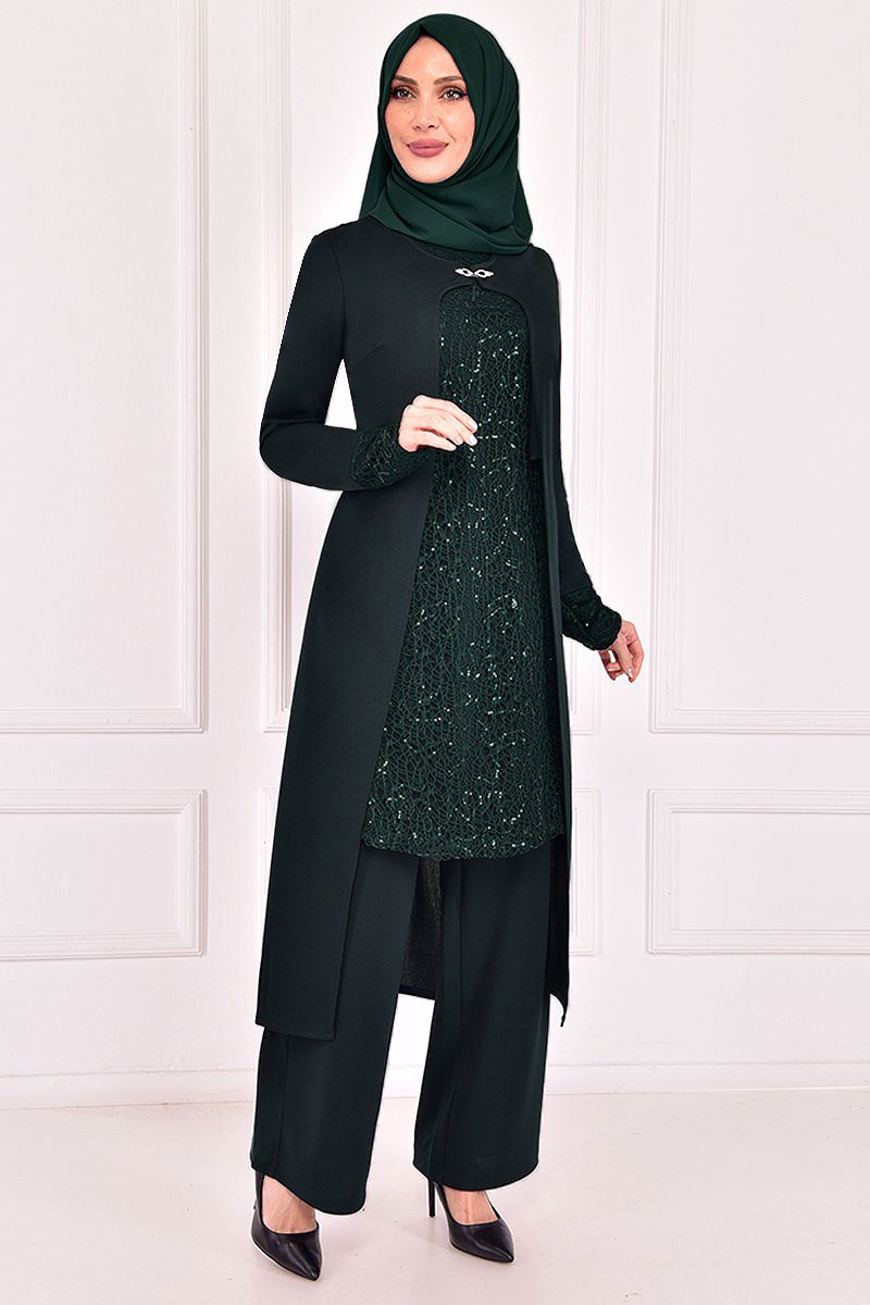 ميزة المنتج : إنه منتج أزياء حجاب للموسم الجديد. غير مبطن. يحتوي المنتج على سحاب خلفي. الترتر عبارة عن ملصقات. خصر البنطلون نصف مطاطي. قد يكون هناك اختلاف في اللون في المنتج بسبب التقاط الصور الفوتوغرافية.
