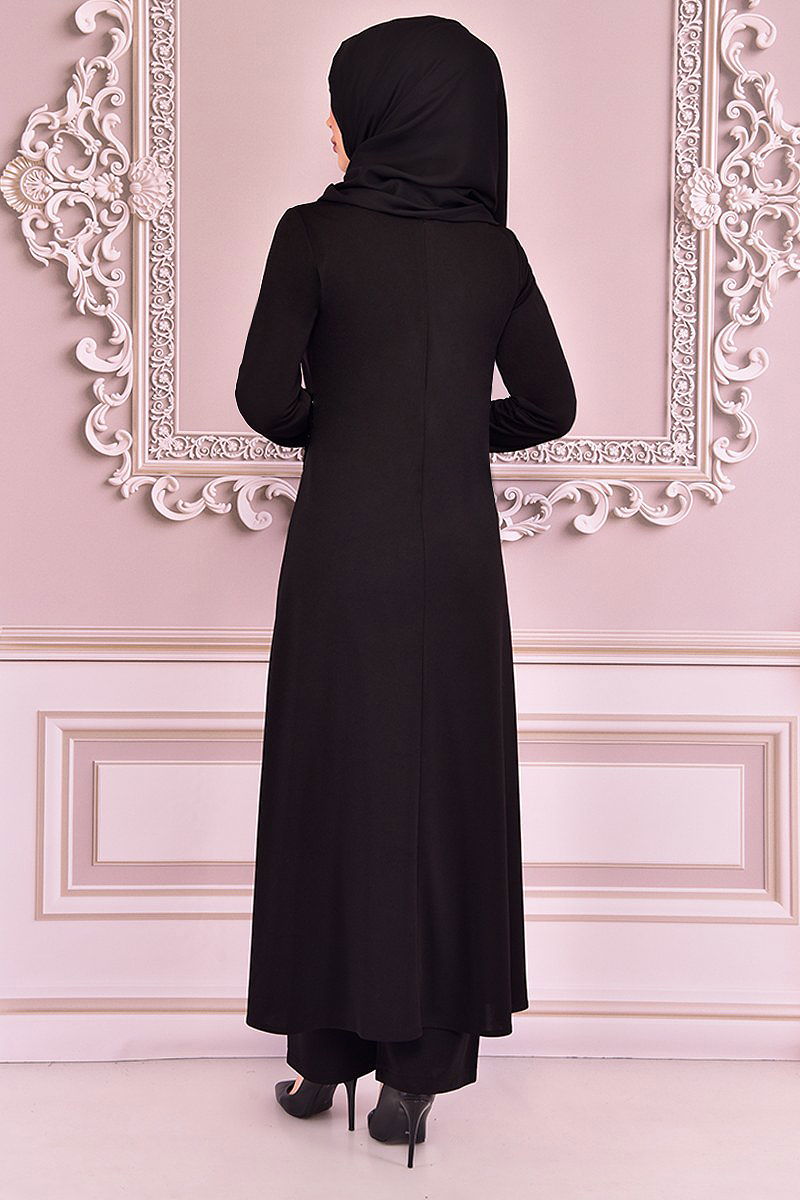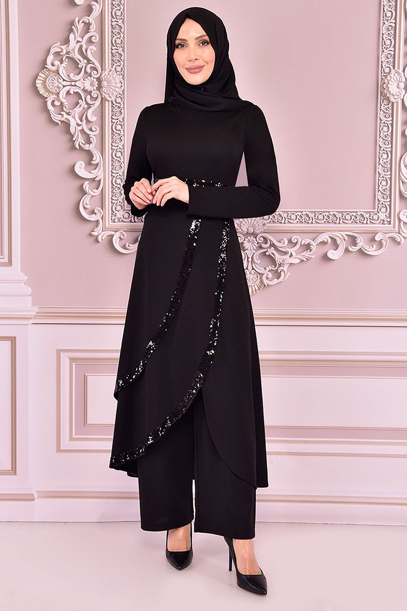 Sequin Detailed Hijab Suit ASM7031-M Black