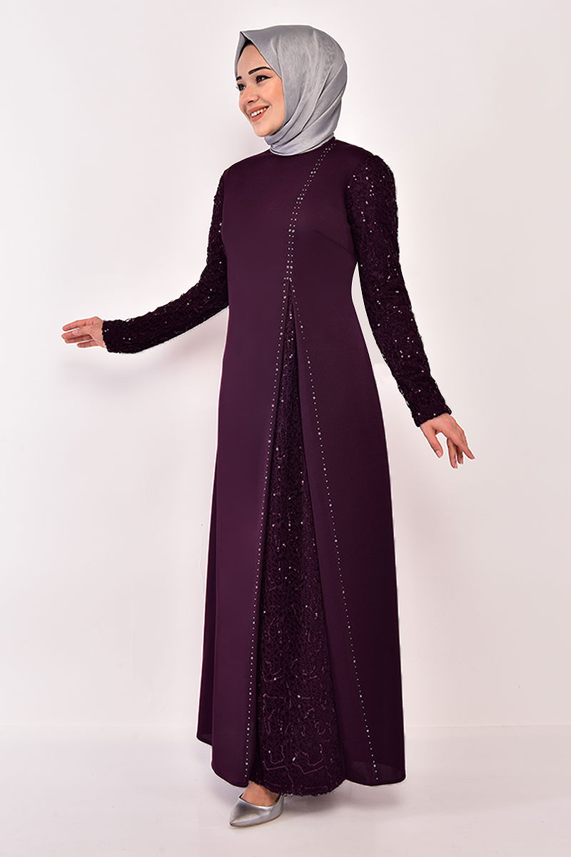 فساتين سهرة مطرزة بالترتر الأرجواني