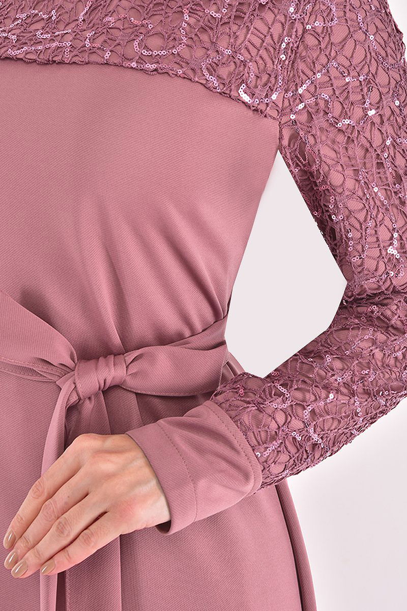 فستان سهرة مطرز بالترتر الوردي كوروسو
