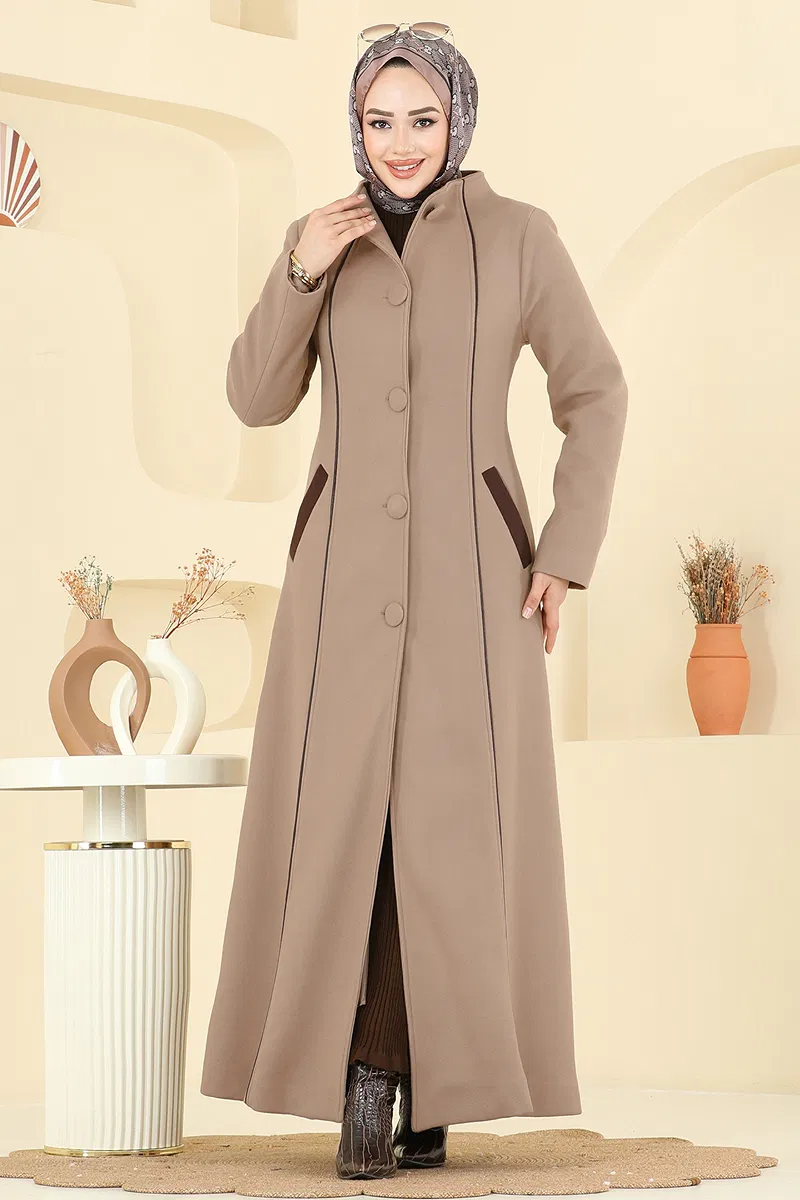 Sonbahar ve kış aylarının vazgeçilmez parçası olan Şerit Detay Kaşe Pardesü, zarif tasarımı ve konforlu yapısıyla dikkat çekiyor. Yarım Hakim yakası ve ön kısmındaki düğmeler pardesüye şık bir hava katarken, kaşe kumaşı sıcak tutarak soğuk havalarda üstün konfor sağlar. Astarı sayesinde ekstra rahatlık sunan bu pardesü, hassas yıkama ile 30 derecede yıkanabilir olması sayesinde bakımı kolaydır. Modern tesettür giyimin şıklığını yansıtan bu kaban, hem günlük kullanım hem de özel günler için ideal bir seçimdir.